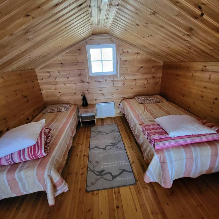 Omarantaiset mökit 3 ja 4 ovat pohjaratkaisultaan samannäköisiä, sisustus voi hiukan vaihdella. Mökeissä tilava ja nykyaikainen keittö. Olohuoneessa varaava takka, joka antaa mukavasti lämpöä ja tunnelmaa. Vuodepaikat 8:lle henkilölle. Alhaalla kaksi makuuhuonetta sekä olohuoneessa levitettävä vuodesohva. Ylhäällä parvi, jossa vuodepaikat kahdelle. Sähkösauna, josta on kiva mennä kuistille välillä vilvoittelemaan ja nauttimaan luonnonrauhasta. Mökki 4 käytössä myös rantasauna, jonka voi lisämaksusta vuokrata majoituksen ajaksi.