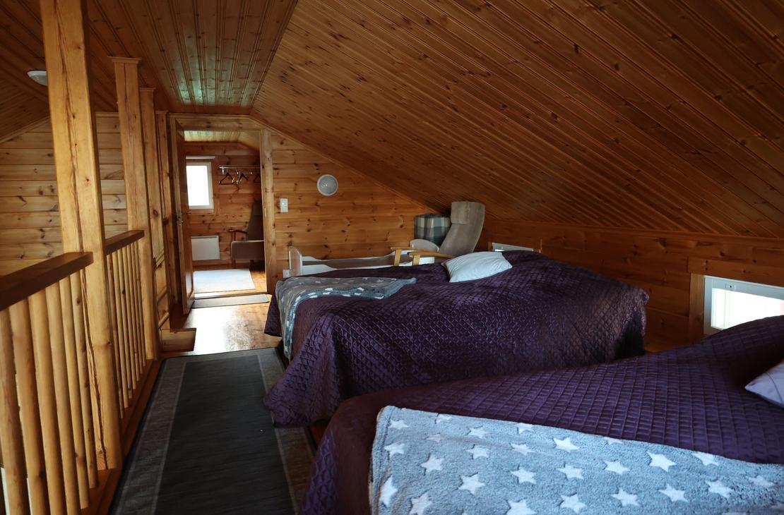 Tämä omarantainen mökki on suurin vuokramökeistämme, sillä vuodepaikat löytyy 12:lle henkilölle. Upeat puitteet isommallekin porukalle esim. työyhteisön tai järjestöjen virkistäytymiskäyttöön. Alakerrassa kaksi makuuhuonetta. Ylhäällä parvella vuodepaikat 4:lle ja yksi erillinen makuuhuone,jossa vuodepaikat 2:lle sekä levitettävä vuodesohva 2:lle. Yläkerrassa lisäksi junnusänky ja lisävarusteena matkasänky.